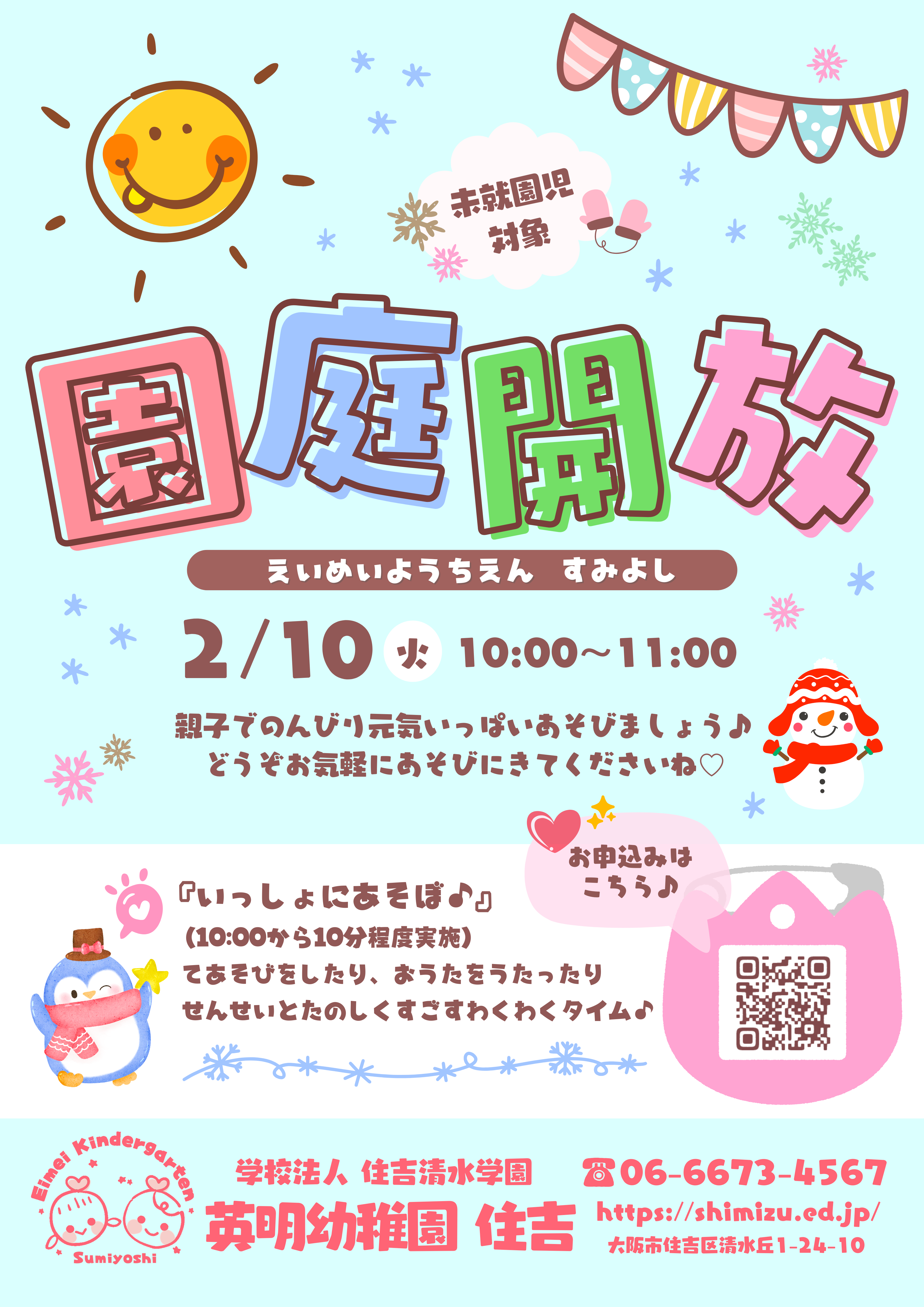 英明幼稚園住吉では、2026年2月10日(火)に未就園児を対象とした園庭開放を開催いたします。
