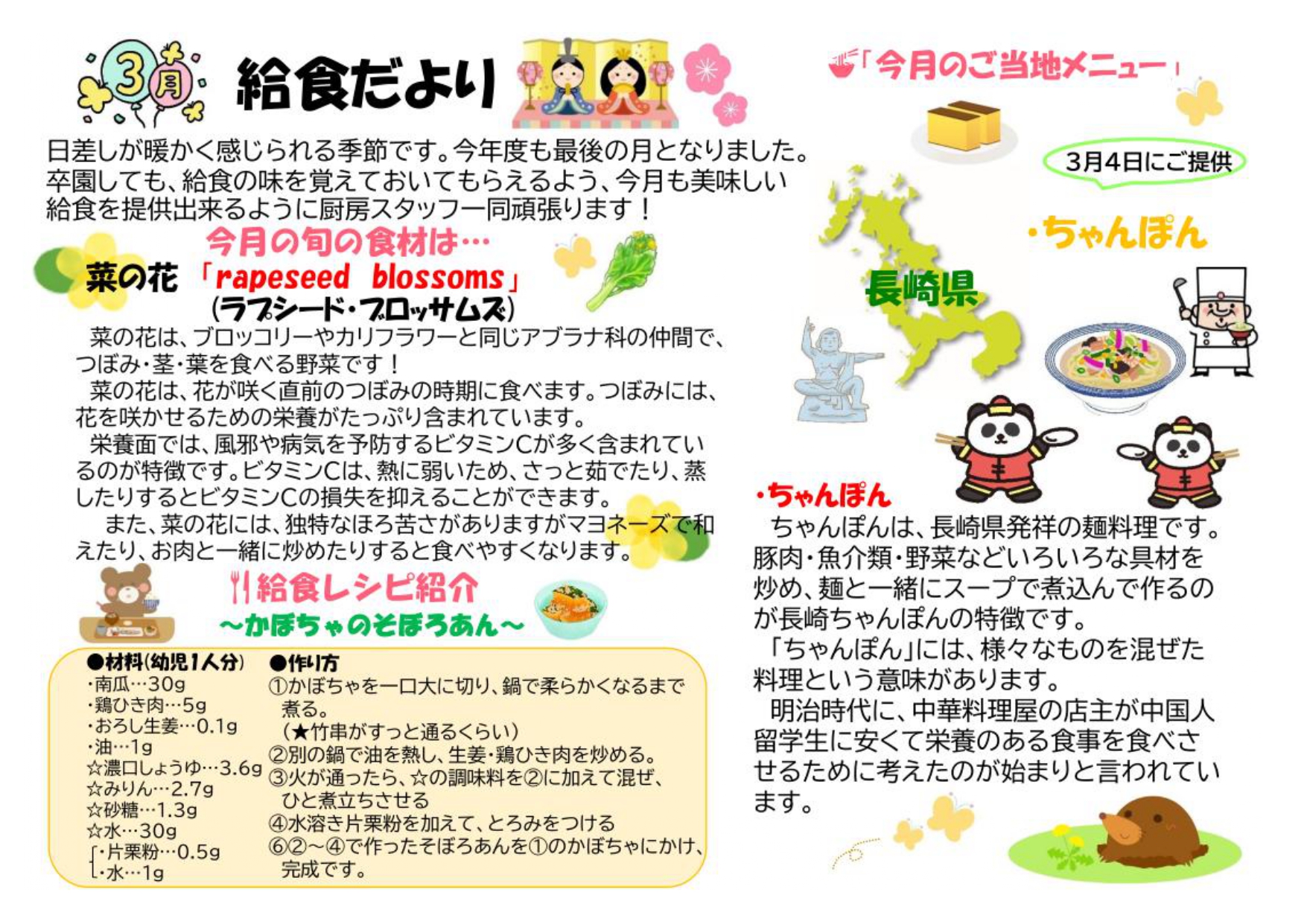 2025年3月分の献立表を更新しました。